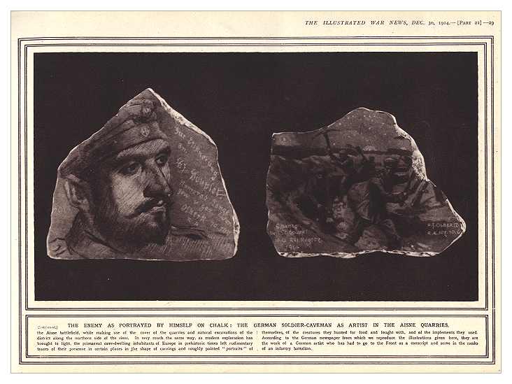 - German drawings in chalk on pieces of stone from a