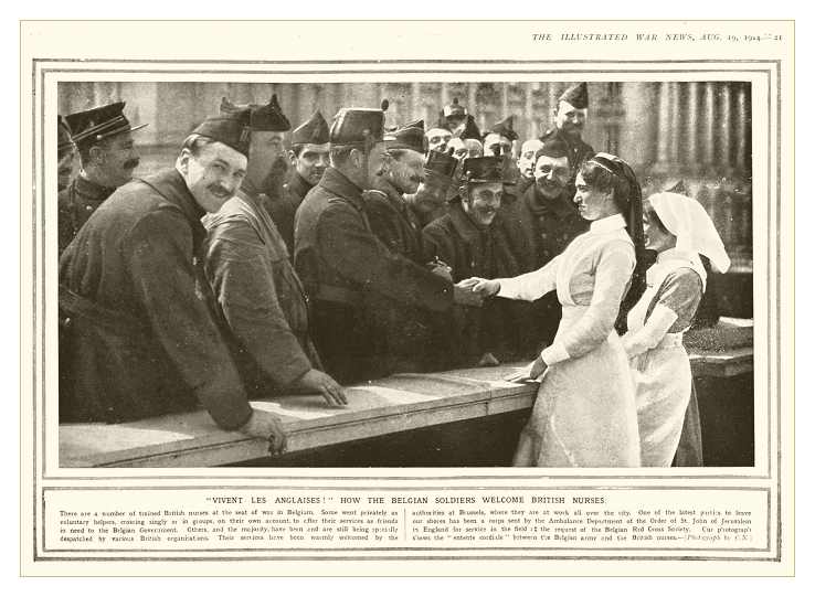 The Belgian officers were eager to be presented to these ladies and paid them handsome compliments. I think the presence of these young women with their hypodermic syringes and first-aid bandages, and their skill in driving heavy motor-cars, and their spiritual disregard of danger, gave a sense of comfort and tenderness to those men who had been long absent from their women-folk and long-suffering in the bleak and ugly cruelty of war. There was no false sentiment, no disguised gallantry, in the homage of the Belgians to those ladies. It was the simple, chivalrous respect of soldiers to dauntless women who had come to help them when they were struck down and needed pity.