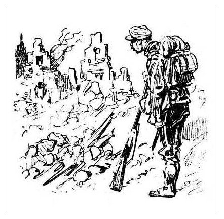 The commentaries are of little interest to us now, butthe drawings when viewed on their own are often little works of art, at times comical and yet inspiring, for Henriot was apparently an able and gifted illustrator. His drawings impart the dogged determination of the French soldier to see the war through to the end, no matter how wretched and bloody.