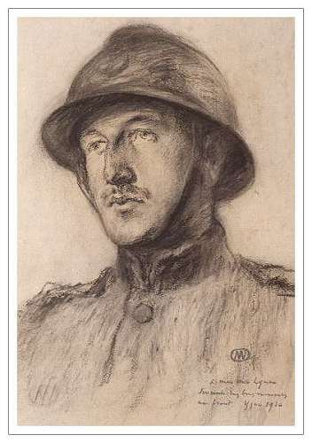 André Leynen was a graduate of the Academy of Fine Arts in Antwerp and had an artist's studio in Nieuport since 1908 where he became proficient in producing land- and seascapes. In 1914 as member of the Belgian 'Garde Civique' he fought at the Siege of Antwerp. He later escaped via the neutral Netherlands and volunteered for the Belgian army in Great Britain. He was a despatcher at first and later transferred to an artillery unit. In 1916 he was seconded to the 'Section Artistique' and exposed his work at an Exposition of Belgian War Art in Switzerland. Afterwards in 1917 he was once again transferred back to an artillery combat unit.