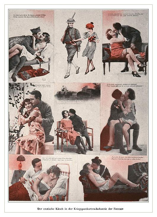 from Magnus Hirschfeld's 'Sexual History of the World War' : a collage of Entente romantic postcards