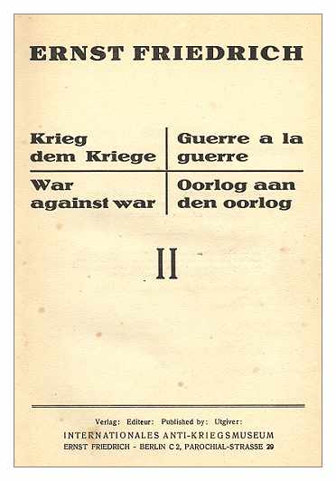 The photos that Ernst Friederich choose for his two volumes of 'Krieg dem Kriege' have little of the poetic in them at all. They are not for the faint-hearted, for instead of showing fallen soldiers lying in a state of heavenly repose, the corpses in his books are horrifically deformed, maimed, mangled, torn apart, burned, decomposed and insect ridden, with internal organs and fractured bones clearly visible. This is not the material for newsmagazines or patriotic publications. The photos of the living wounded are, if anything yet more shocking to behold and contemplate, even more so when we try and realize the extent of medical proficiency at the time.