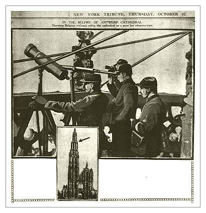 This photograph was taken from the New York Tribune and was intended to prove the German point that the Allies themselves were responsible for damage done to church towers by using them as military observtion points