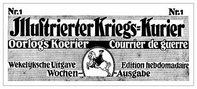 The 'Illustrierte Kriegs Kurier' (the Illustrated War Courier) was a lavishly illustrated German news magazine intended for foreign distribution. It was printed in German, French, Dutch and for a time in English. Not only was it meant to be sold in the occupied territories of France and Belgium, but in neutral countries as well : Switzerland, The Netherlands and the USA.