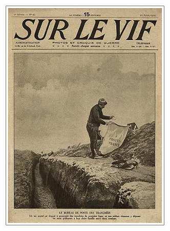 left : coverpage of 'Sur le Vif' : picking up the mail from the trenches