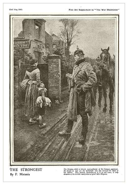 Belgian boy sticking his tongue out at a German ; war-time humor and patriotism