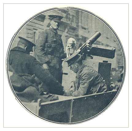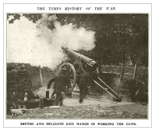 Firing an artillery piece inside one of the Antwerp forts. British troops took over the defence of several of the forts.