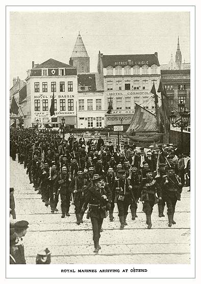 "I witnessed the detrainment of the naval brigades at Vieux Dieu and accompanied them to the trenches north of Lierre. As they tramped down the bordered, cobble-paved high road, we heard, for the first time in Belgium, the lilting refrain of that music-hall ballad which had become the English soldiers' marching song : Tipperary" (from 'Fighting in Flanders' by American journalist E.Alexander Powell)