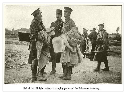 The English had arrived! Antwerp was full of them! Oh, there could be no mistake; he knew the uniforms, and they were everywhere, thousands and thousands of them - in short, the British army! It was, perhaps, the only bit of good news that we had had since the war began, and it was the last we were to hear for a long time. And all day we lived in the pleasurable excitement of the news, not daring to mention it, wondering if the Germans knew, and almost every minute expecting some great event to be born of it.