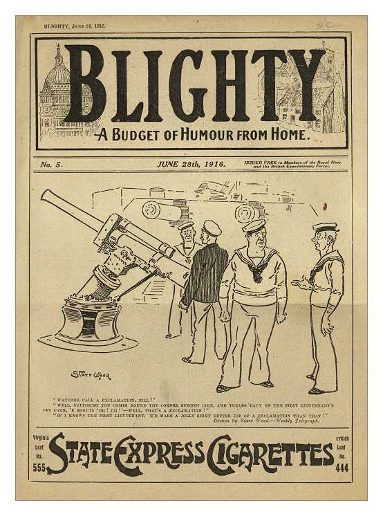 A humor magazine freely distributed to certain branches of the British armed forces. 'Blighty' contained humorous stories and cartoons patriotically donated from other prominent magazines such as for instance 'Punch'.