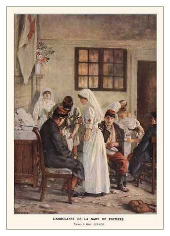 Que les mères inquiètes se rassurent: leurs enfants qui tombent sur les champs de bataille ne sont pas abandonnés. D'activés et délicates sollicitudes s'empressent à leur secours. Beaucoup de prêtres, dans les sections d'infirmiers, complètent l'uvre religieuse déjà' accomplie par les aumôniers militaires. Nous avons tous confessé plus d'un dos hôtes de nos wagons du service de santé. Le saint Viatique y a été porté à des moribonds. Des conversations s'y sont tenues qui préparent des conversions. La prière du soir est faite parfois en commun, dans ces dortoirs ambulants, mal éclairés par une mèche fumeuse, mais où entraient de nouvelles clartés du ciel.....
