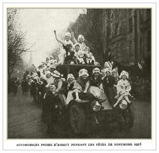 Automibiles 'commandered' by a joyous crowd.