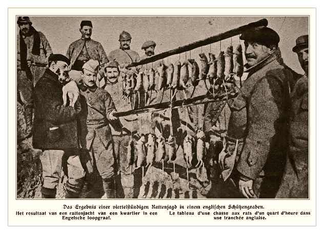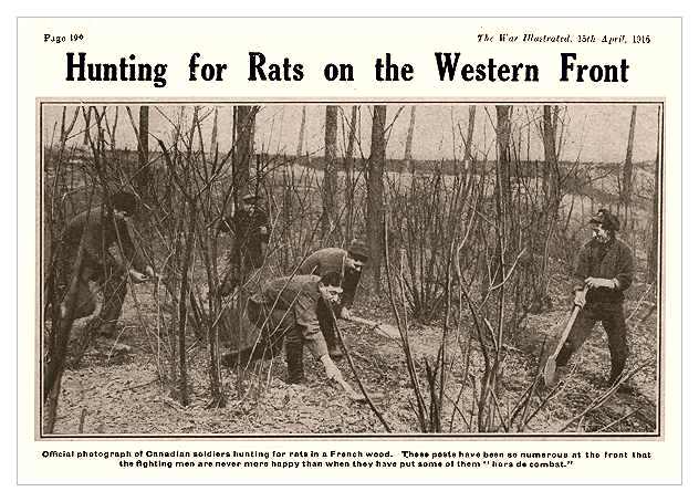 In such a war as this where two vast armies had been entrenched for over two years, rats were everywhere; not only in the trenches but all over the back areas where troops were quartered. This enormous increase in the rat population was brought about as is always the case by two factors which had upset the balance between the natural enemies of rats and the rats' food supply.