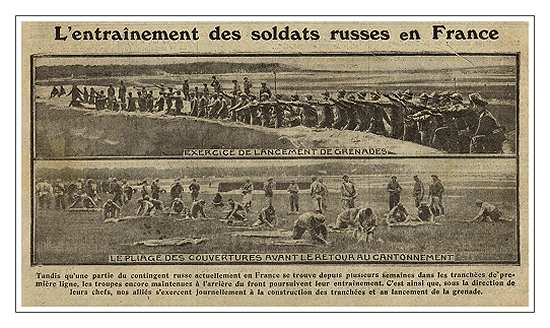 from a French illustrated daily 'Excelsior' : training Russian troops in France