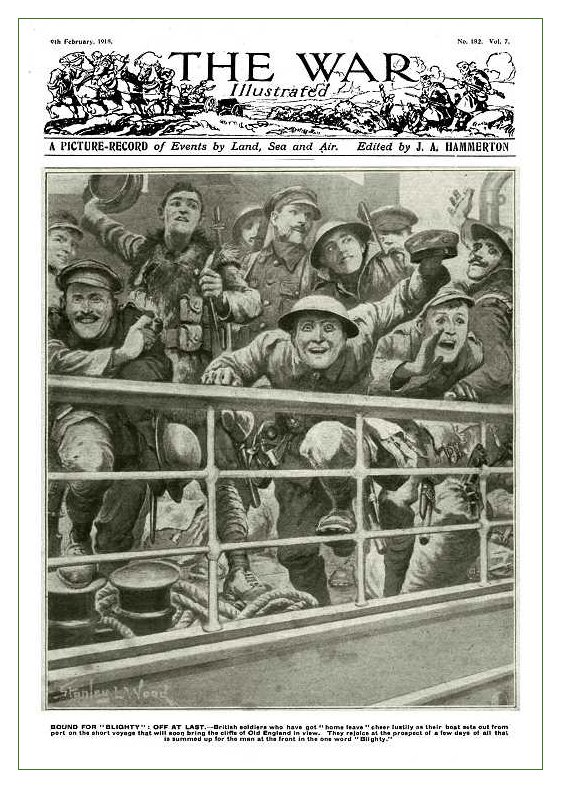 (right) "Bound for Blighty : Off at Last"
