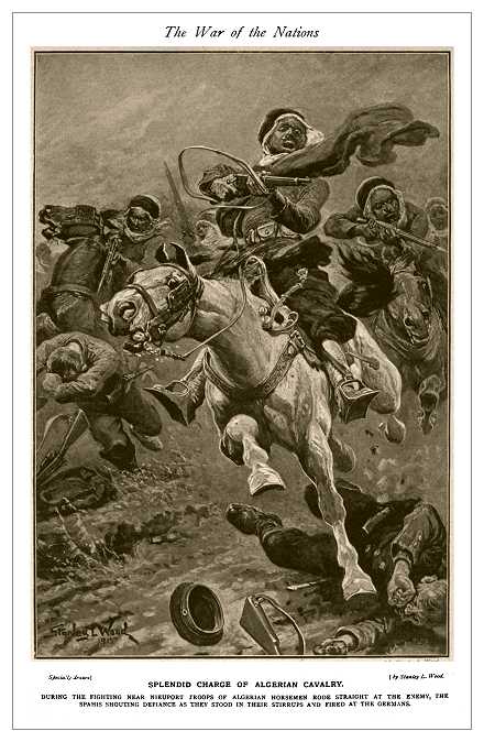(left) French North African troops depicted as wild and romantic Arab Bedouin