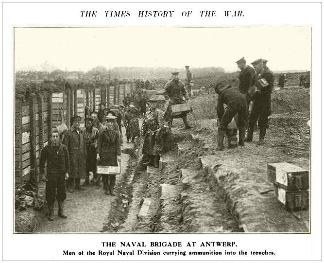 He said: "They (the Naval Brigades) were chosen because the need for them was urgent and bitter; because mobile troops could not be spared for fortress duties; because they were nearest, and could he embarked the quickest ; and became their training, although incomplete, was as far advanced as that of a large portion not only of the forces defending Antwerp, but of the enemy forces attacking."