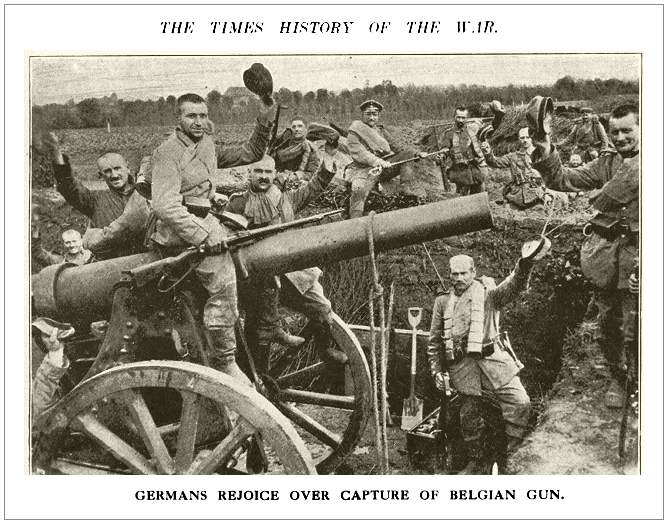 It is said that in the Revolutionary War in America the great importance of the Battle of Bunker Hill was that it taught the Colonists that, untrained as they were, their levies could fairly hold their own in open fight against the trained British troops, with their world-wide reputation; and that discovery was calculated to be equivalent to a multiplying of the American armies by four or five fold. Something similar to this happened in this war. The Allies soon learned that, so far as infantry attack were concerned, they had nothing to fear from much superior numbers of Germans. In Antwerp, as elsewhere, the result was that the Belgian soldier went daily to the front and to his place in the trenches lightheartedly, filled with a certain gay contempt for his opponent. only desiring to have a chance to get at him, serenely assured that at anything like reasonable odds he would have the best of it.