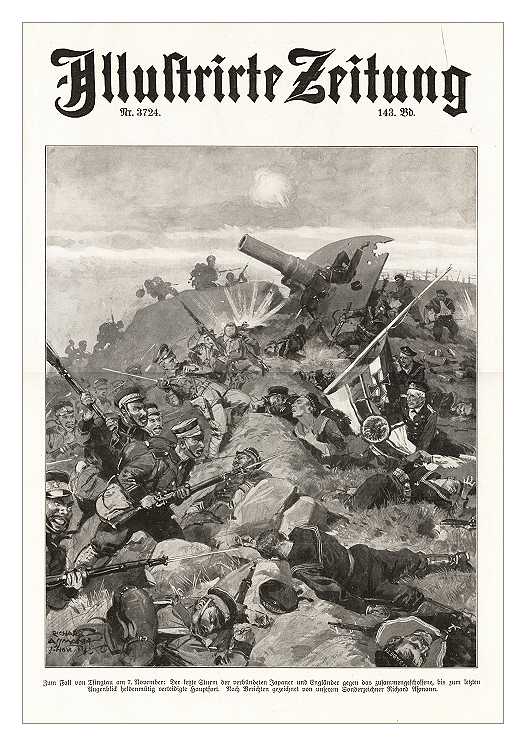 Outside and inside cover showing the last stand of German forces in Tsing-Tao