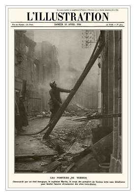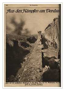 In this section we will show a collection of pages taken from Great War newsmagazines, French and British, which show photos and illustrations pertaining to the fighting at Verdun in 1916. Many of the now famous photos of the fighting were published at the time by such outstanding magazines as the French 'L'Ilustration' or 'Le Miroir' though in a different lay-out than one finds in modern-day history books. Most photos published in magazines in 1916 however are now mostly forgotten. The intention in this following extensive collection of pages from Great War magazines, is to give an idea of what people at the time of the battle itself read about and what kind of illustrative material they would have seen in print.