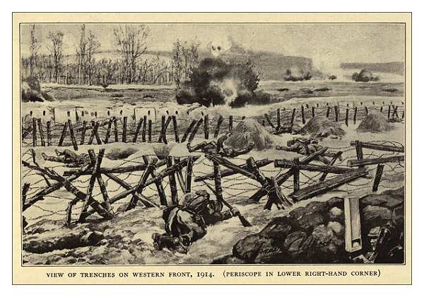 On the Western Front in 1914 - Villiers is looking through a periscope, bottom-right