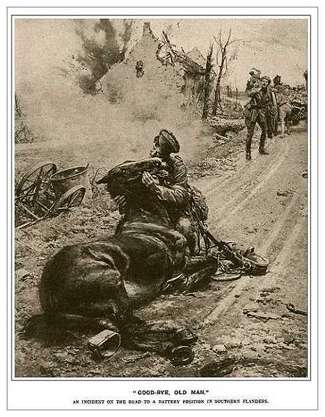 One of the most human pictures of the war represented a British soldier on the battlefield holding up the head of of wounded horse and saying 'Good-bye, old pal !"