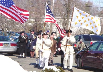 - An "official" welcoming ceremony beginning at 12:30 p.m., with 'General Lafayette' escorted in by an honor guard, militiamen, and a fife and drum corps.
