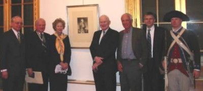 Among the attendees were a number of early supporters of the Washington Rochambeau Revolutionary Route (W3R) historic trail initiative. Some shown here gathered around the comte de Rochambeau's portrait.