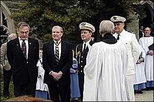 (seen from the back) Reverend R. James Larsen, Rector of the Washington Memorial Chapel;