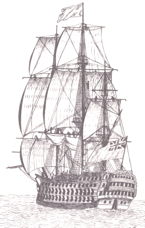 Both fleets were now headed to the eastward, and as the British Ships had the wind they were better able to manoeuvre. At 2.30 the leading British ship, the Shrewsbury, was signaled to lead more to starboard so as to approach the van of the French Fleet, the