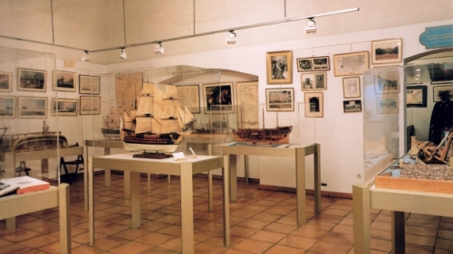 | Above is one of the museums display rooms, which includes 30 ship models, including some commanded by de Grasse during his long naval career. The case in the center, foreground displays the Ville de Paris, the admiral's flagship at Yorktown. | ||
