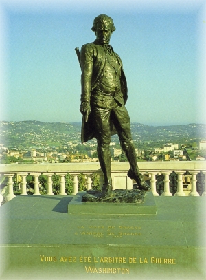 In 1981, there was the inauguration of a statue of François-Joseph, Paul Comte de Grasse (1722-1788), in the city of Grasse [above left], and at Bar-sur-Loup [above right]. The Bar-sur-Loup statue stands near the remains of the Château where de Grasse was born. The city of Grasse monument is located at the edge of a large plaza, near the large parfume museum and the Tourist Office. Cyril de la Petellière's statue dramatically depicts de Grasse's critical decision to go to the Chesapeake. The act warranted George Washington to later complement the French admiral as being ‘the arbitrator of the war'.