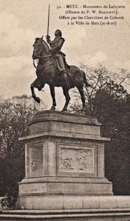 The city of Metz funded and executed replacement the equistrian statue of Lafayette that was destroyed by the German occupation forces during WWII.