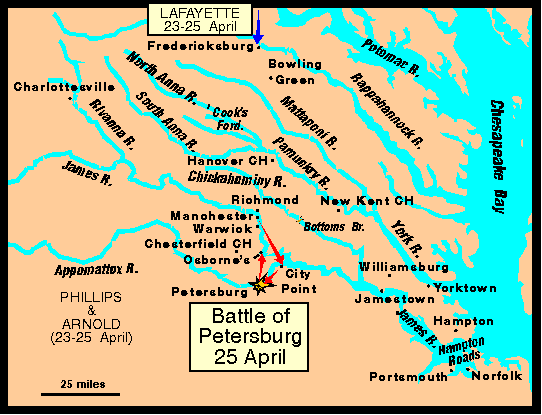 - 'Battle of Petersburg' took place at Blandford (about a mile east of Petersburg).