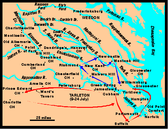 - Tarleton led an impressive 400 mile round-trip cavalry operation to Amelia CH, Prince Edward CH, and New London in Bedford County. He returned back through Dinwiddie CH and to Petersburg.