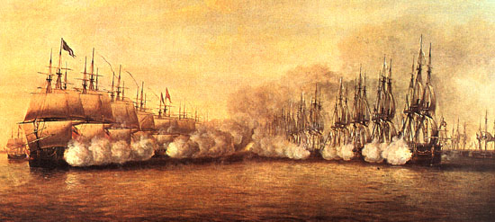 An interesting side note in this battle is that Suffren commanded from the frigate Cl�op�tre. Influenced by the capture of de Grasse's at the battle of the Saintes (12 April 1782), the French naval ministry sent out an order that, in battle, the flag officer commanding should direct his fleet from a frigate.
