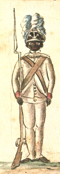 76. "The grenadiers of the regiment of G�tinais, which had been formed out of that of Auvergne, were to lead the attack. . . . I said to them, `Mes enfants, if I should want you this night, I hope that you have not forgotten that we have served together in that brave regiment of Auvergne Sans tache, an honorable name that it has deserved ever since its creation.' They answered that, if I would promise to have their name restored to them, they would suffer themselves to be killed-even to the last man. They kept their word, charged like lions, and lost one-third of their number. . . ." Rochambeau (2), I, 294. The General also kept his word. In the Etat militaire for 1783 is the following note: "This [Eighteenth Royal Auvergne] Regiment . . . , known by the name of G�tinais, has resumed that of Auvergne by Ordinance of II July 1782." The newspaper published at Le Cap Fran�ais, Affiches Am�ricaines, 5 March 1783, notes that the royal ordinance was read to the regiment in a special ceremony held there on 22 February. [Return to main text.]