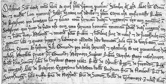 | Charter of the Abbey of Bury St Edmunds, early 13th century (British Library, Egerton Charter 2180). All images by permission of the British Library. | |