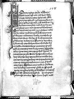 | The Gospels of Maelbrigte, 12th century, Irish (British Library, Harley 1803, f.128). All images by permission of the British Library. | |