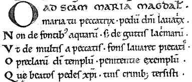 | A punctuation mark of a single dot appears in the middle and end of each line, separating each line into a rhyming couplet. Try reading it aloud. The simple metre and rhyme and a simple balanced structure would make the text very easy to learn by heart, even if your Latin was not so good. |