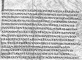This is a segment from what is believed to be a 4th century copy of Virgil's Georgica, of which only seven leaves were known at the time that Dr Steffens' work was published, four of them in the Vatican Library in Rome. It is of interest as it shows the use of the majuscule square capitals script for the main body of a text, rather than only for headings. This script was developed for use in carved inscriptions in stone, and for use in manuscript is painstaking to write and difficult to read. |