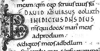 | The large and decorative initial B represents the beginning of Psalm 143, and so represents a reading aid as well as a decorative element. The reintroduction of rustic capitals as a heading script occurred in books of the Carolingian era, as did the foliate decoration which harks back to Classical models. The style may be typical of late Anglo-Saxon books, but the pedigree is a little more complex. |