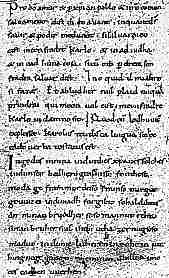| The events were recorded by a contemporary chronicler, Nithard, but there are numerous questions which must be asked about the recording. The earliest example of the text is not in Nithard's own hand, but in a 10th century copy of the work. One does wonder about the precise accuracy of the copying of a text in what was not essentially a written language, by a copyist versed in Latin literacy. The very peculiar word spacing, particularly in the lingua teudisca text, suggests a scribe simply copying letters in order rather than comprehending the text. And then, how did Nithard get the text? Did he copy it down by ear? Was he given a written cheat sheet? Did they rehearse? If the soldiers were supposed to understand the oaths given by each king, how did they hear them? Did they have designated officers standing at intervals repeating what was supposed to have been said to the assembled men? And how many existing dialects of the lingua romana and the lingua teudisca were there anyway? Perhaps this is actually a form of military lingo. I'm sorry, but I can't help but have a kind of Monty Python image of the whole thing. Nevertheless, history is largely about a series of myths, and this is one of them. The script is a neat little Caroline minuscule with no extraordinary features, and if you pore over the words, you may find some that are reminiscent of French or German. | |