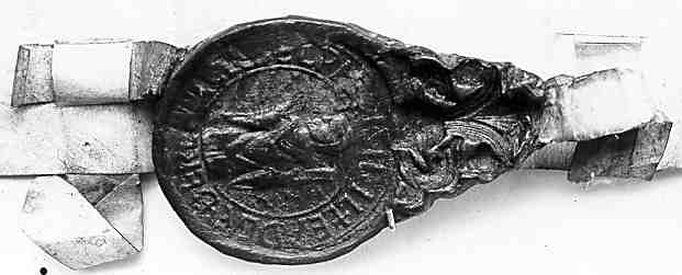| The seal is attached sideways by tags to the document. The figure in the middle represents St Edith with one hand raised in benediction and the other holding a book. According to a somewhat dubious 15th century chronicle, Wilton was refounded or rebuilt several times after its initial establishment as a nunnery around 800. Edith was the child of Wulfrid, who was carted off from Wilton by Edgar, king of the English (944-975), but who refused to marry him and returned to the nunnery where her baby was born and took the veil as a child. Edith purportedly rebuilt the church at Wilton, became its chief patron and perhaps the abbess, and died young. After a few handy miracles at her tomb, she became the patron saint of the monastery. Monastic chronicles are wondrous sources of origin myths, and this aspect of them could well be studied from an anthropological perspective. | |