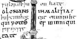 | The Caroline minuscule of the Latin has the English characteristic of wedged ascenders on letters like b and l. The English version uses distinctive forms of d, g and s as well as the th symbol. | ||||