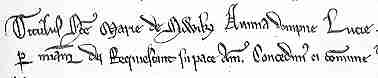 | With Wilton Abbey in Wiltshire we return to a calligraphic charter hand with rather curly elaborations and the backsloping d. |