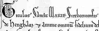 | The next entry, from Southwyke Priory in Hampshire employs a charter hand of a different character, with loopy ascenders and curly capitals. |