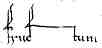 Distinctive letters : This script has some odd calligraphic flourishes, but the underlying letter forms are basically those of Caroline minuscule, and so are pretty easy to recognise. The ascenders and descenders are very tall compared to the body of the letters. The letters b, h and l have strongly wedged or even split tops to the ascenders, while d has a curving swept back form. The descender of q curves to the left like a g. There are two forms of s, the short rounded and the tall form. When s is doubled it develops some extra curls which makes it resemble an f, as in