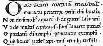 | The script is of an Italian rotunda form, while the miniatures in the book were apparently by a Greek artist. This section is a poem to St Mary Magdalen. The enlarged and slightly separated capital letters at the beginning of each line are a tradition of verse writing in the middle ages. | |