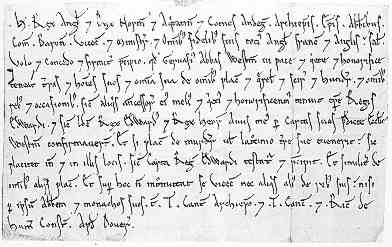 | The study of the formal structure and wording of documents is known as diplomatic. This seems to be a subject that everybody mentions but nobody knows too much about. Anglo-Saxon scholars have studied these structures in great detail in order to detect the genuine from the forgeries among documents from that time period, but there is evidently no general book on the diplomatic of English charters. Relationships between the wording of documents and their changing social meanings are awaiting the energies of a new generation of scholars with an interest in social history. | ||||